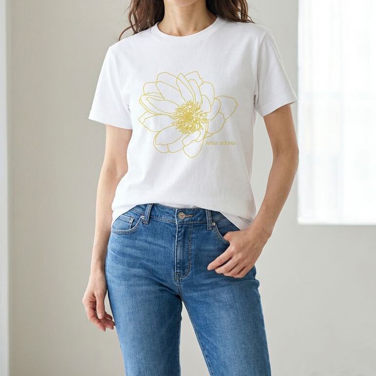 福寿草をモチーフにした、線画デザインのTシャツです。