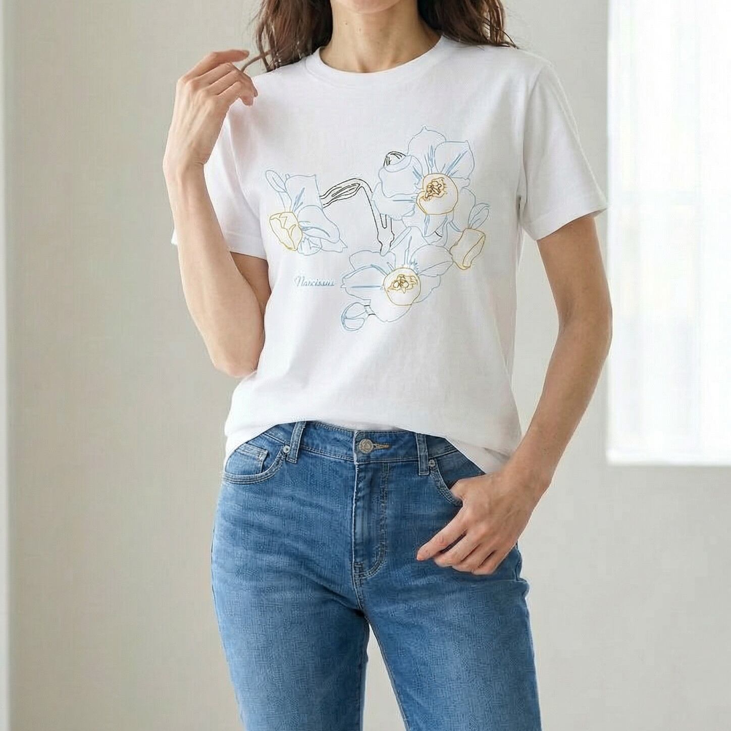 水仙をモチーフにした、線画デザインのTシャツです。