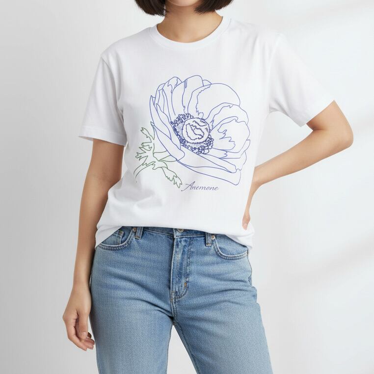 アネモネをモチーフにした、線画デザインのTシャツです。