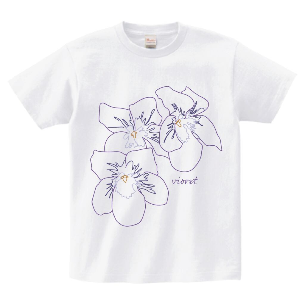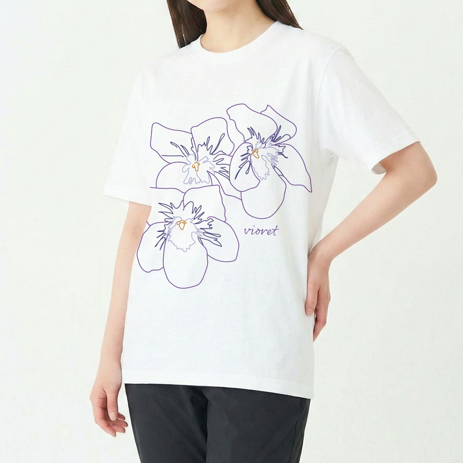 スミレをモチーフにした、線画デザインのTシャツです。