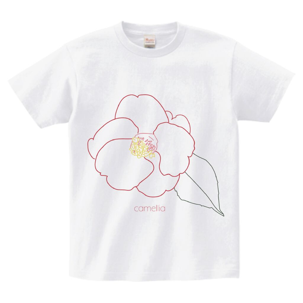 椿をモチーフにした、線画デザインのTシャツです。