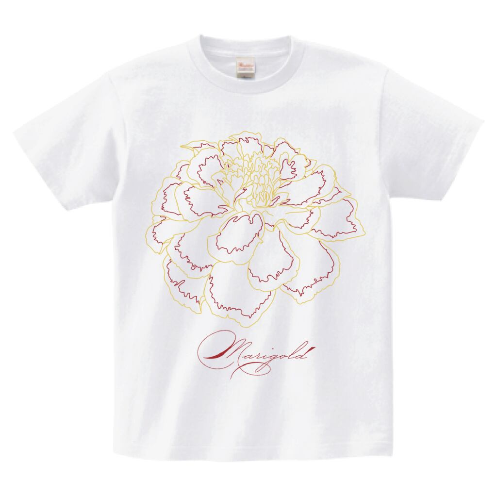 マリーゴールドをモチーフにした、線画デザインのTシャツです。