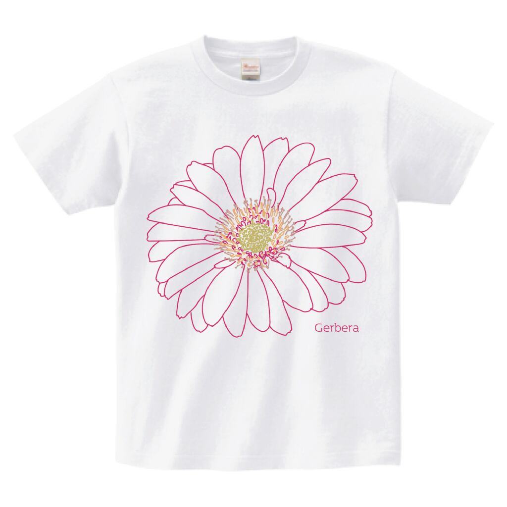 ガーベラをモチーフにした、線画デザインのTシャツです。