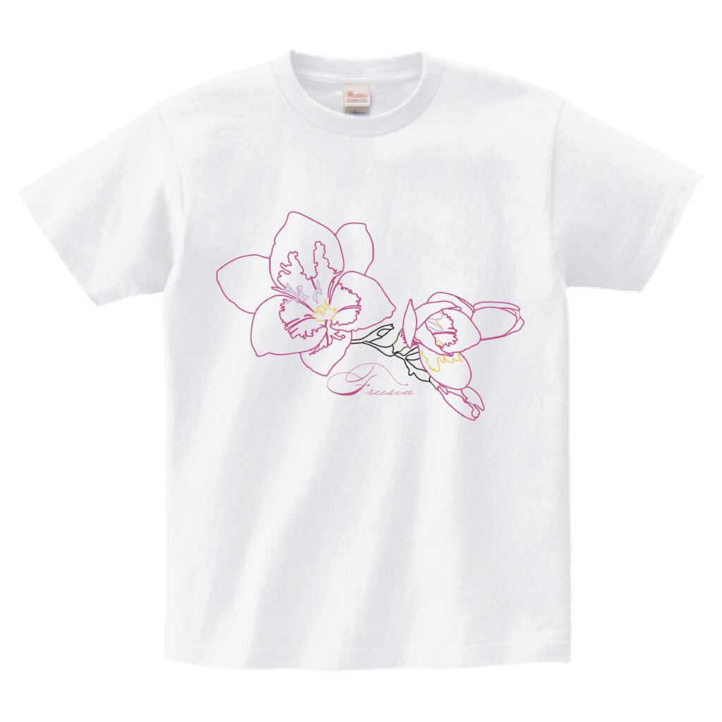 フリージアをモチーフにした、線画デザインのTシャツです。