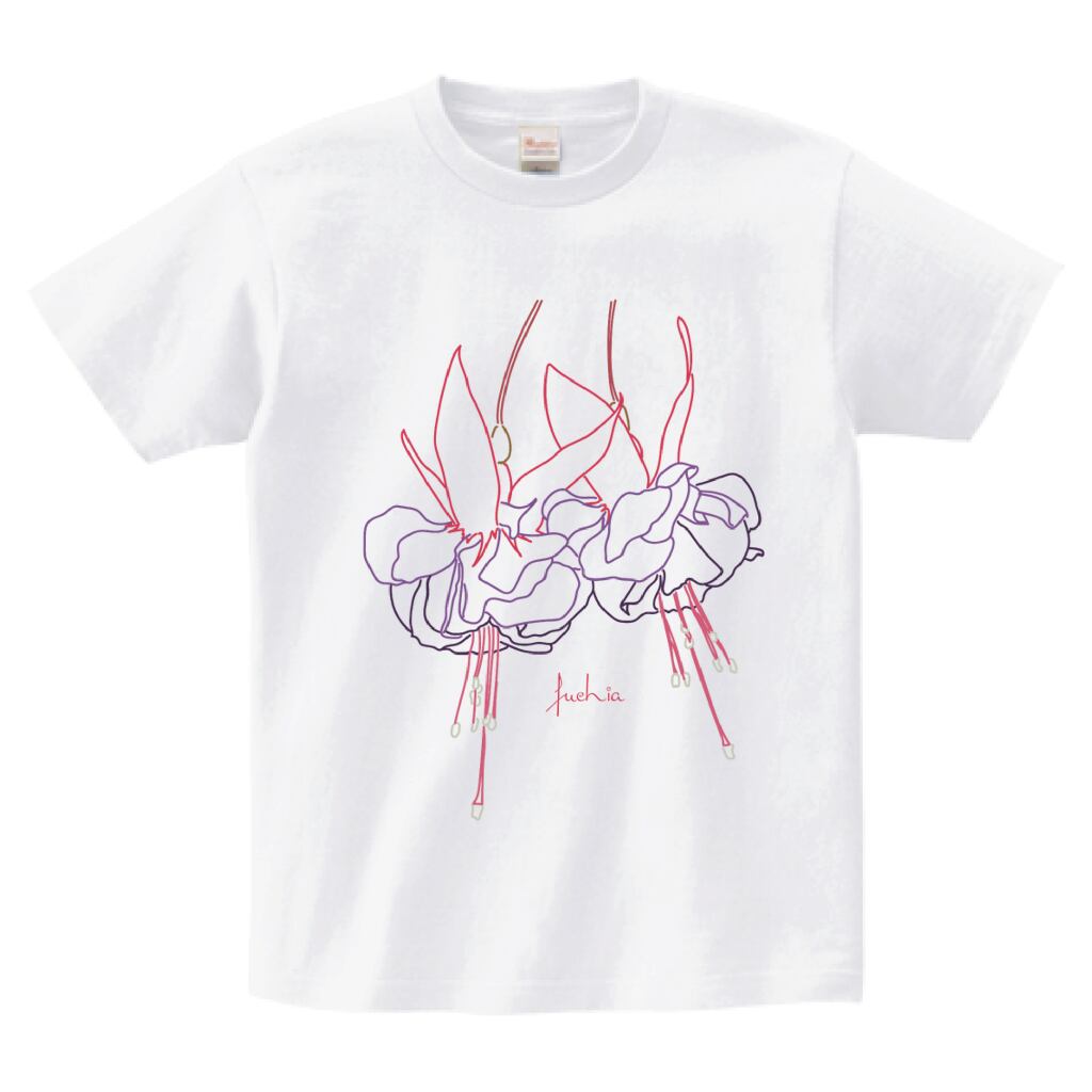 フクシアをモチーフにした、線画デザインのTシャツです。